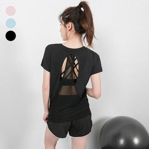 요가복 슬림핏 반팔 등판메쉬 운동복 헬스 요가 스포츠웨어 WFJHKBV