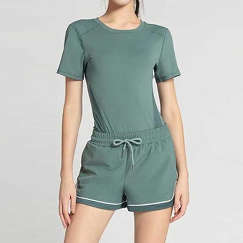 블레오 여성 운동 스포츠 메쉬 반팔 티셔츠 밴딩 반바지 세트