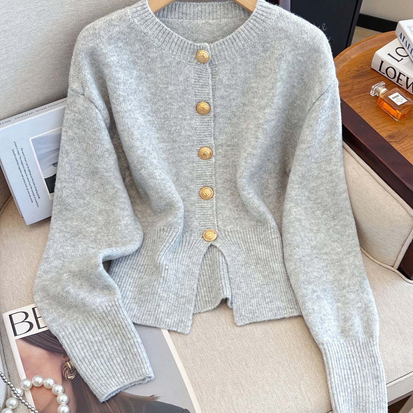TEMU 여성용 우아한 V넥 가디건 - 세련된 가을/겨울 스웨터, 버튼 앞면, 긴소매, 단색, 캐주얼부터 포멀 웨어까지, 친구를 위한 완벽한 선물, 캐주얼 가디건 | V넥 가디건 | 구조, 스웨터 가디건