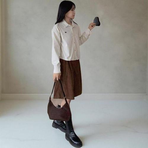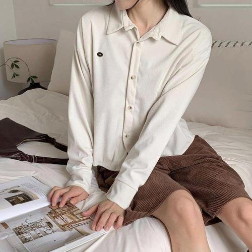 [신상오픈런]여자 면혼방 메탈 팬던트 골덴 세미크롭 남방 셔츠