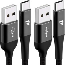 로랜텍 C타입 메탈 고속충전 패브릭 케이블, 1.2m, 블랙, 2개