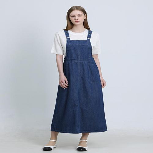 로미홀리-여성 빅사이즈 청멜빵 데님스커트 롱 원피스-S9000