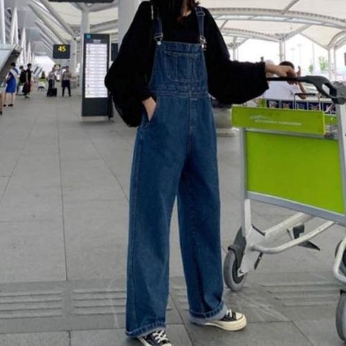 M~XL 와이드 롱 연청 데님 멜빵바지 오버롤 점프수트 Women's jeans 비보뉴