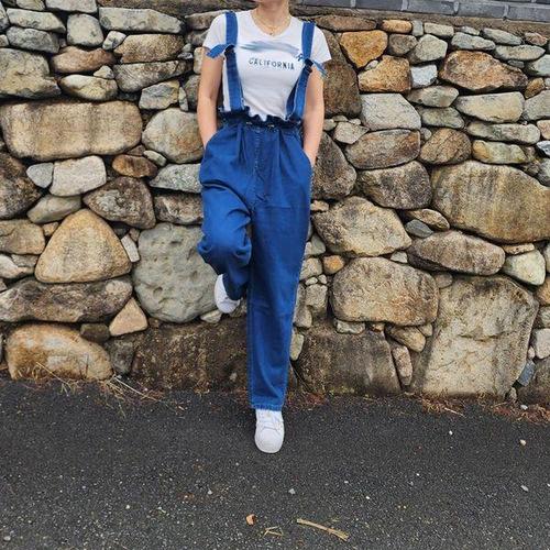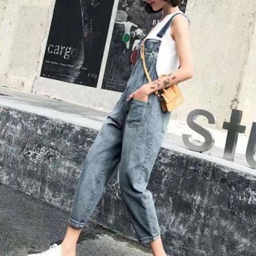 ANYOU 청바지 데님 멜빵바지 데님 바지 여성점프수트 여성청바지 게스점프수트 데님 멜빵바지
