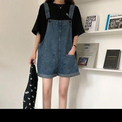 [에이치플러스몰]LD598 청멜빵바지 데일리룩 평상복 밴딩팬츠 반바지