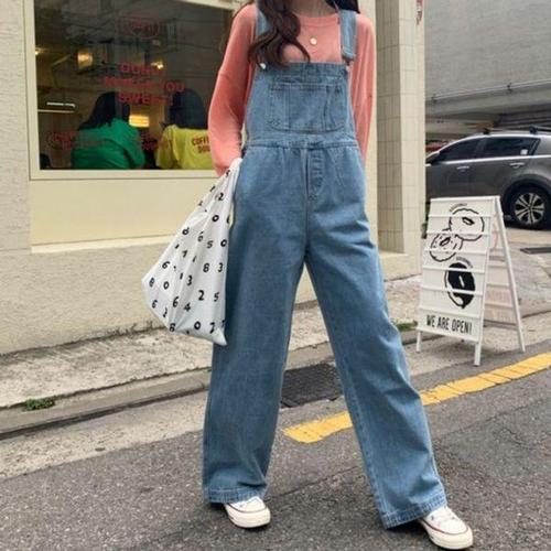 [에이치플러스몰]DJJ325 청멜빵 와이드바지 평상복 데일리룩 청바지 데