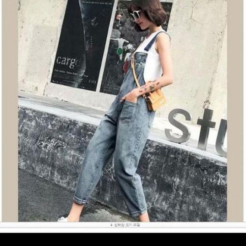 [에이치플러스몰]코디 데님 팬츠 청멜빵바지 날씬하고 데님멜빵바지 길