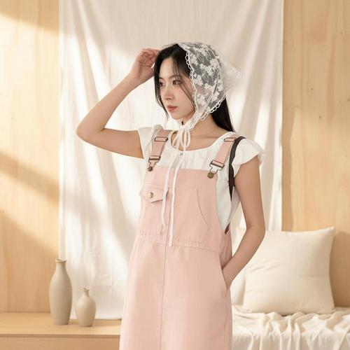 [옷자락] 여성 내추럴 무드 코튼 멜빵 롱드레스