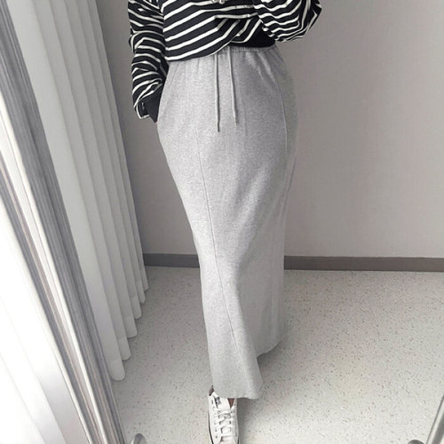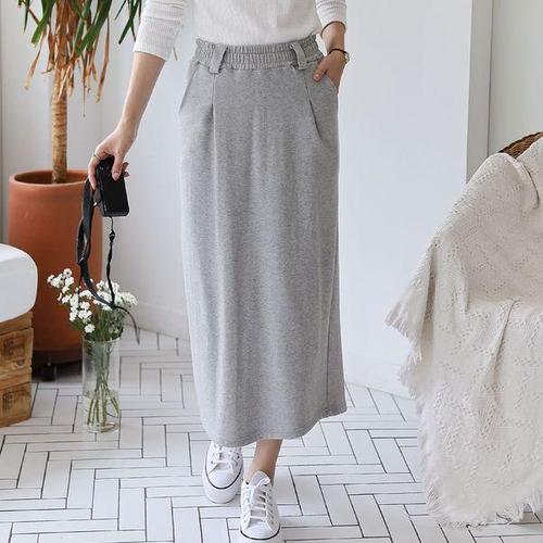 [옷자락]여자 뒤트임 일자핏 바이오 코튼 데일리 가을 롱스커트