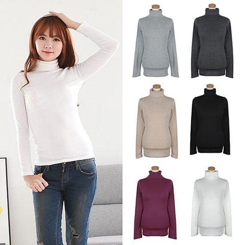 [에이치플러스몰]티셔츠 터틀넥 폴라티 긴팔 면스판 캐쥬얼 니트 여성