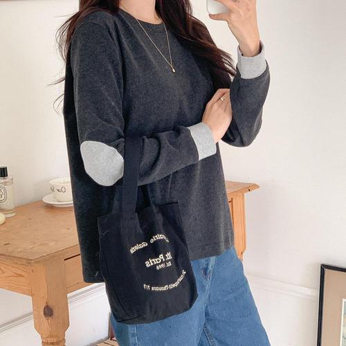 [신상오픈런]여성 가을 긴팔 티셔츠 배색 팔꿈치 패치 라운드넥 면티