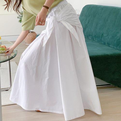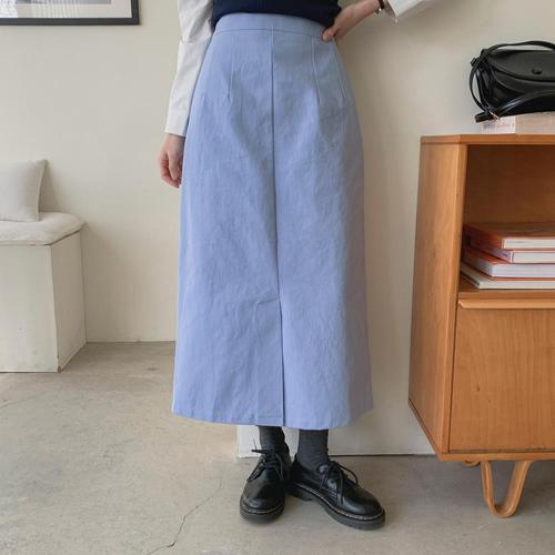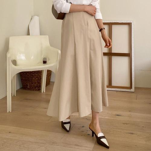 [다잇템]여자 백밴딩 면원단 투핀턱 슬릿 롱스커트