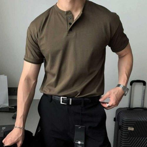 남성 무지 면 티셔츠 헨리넥 버튼 반팔티셔츠 데일리 라운드 반팔티 WFMZWXE