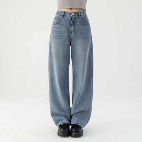 [신상오픈런]여성 기본 워싱 와이드핏 롱 코튼 청바지 데일리 팬츠
