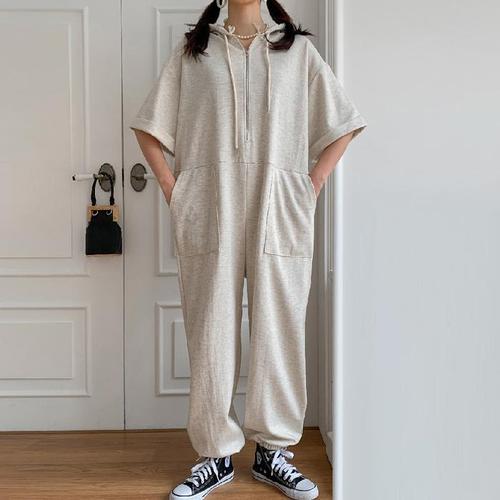 까르죠아 후드 면 점프슈트 빅사이즈 77 88 99 루즈핏 박시한 여성 후드 임산부