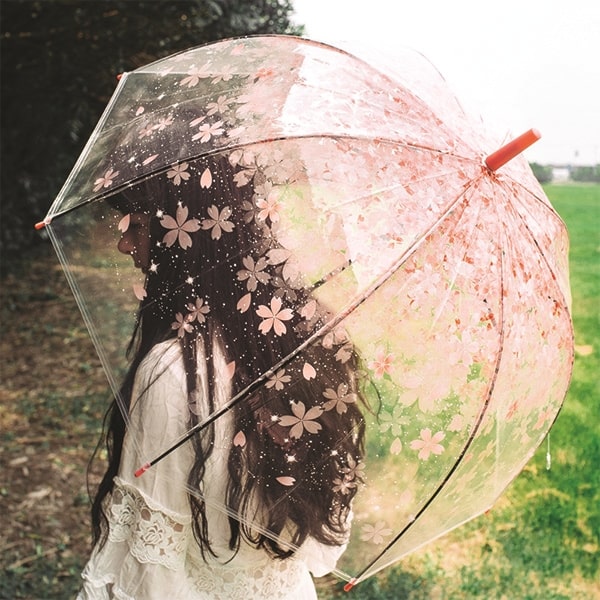 수동 3단 미니 비닐우산 체리블라썸 휴대용 벚꽃 투명우산
