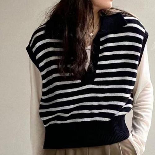 [엄지척]여성 모던 디자인 카라 포인트 크롭 단가라 니트 조끼_20360290_667501