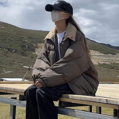 [엄지척]포인트 모던 배색 여성 하이넥 2컬러 패딩점퍼 루즈핏_20342827_667501
