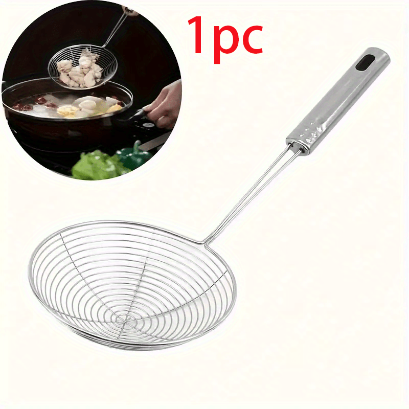 TEMU 1pc 강력한 스테인레스 스틸 스트레이너 스푼 - 손잡이가 있는 와이어 스커머, 요리, 튀김, 주방 사용에 적합, 주방 및 식당에 이상적, 식품 접촉 물질, 주방 스트레이너 | 현대 주방 용품 | 내구성 있는 주방 도구, 주방 스트레이너 바구니
