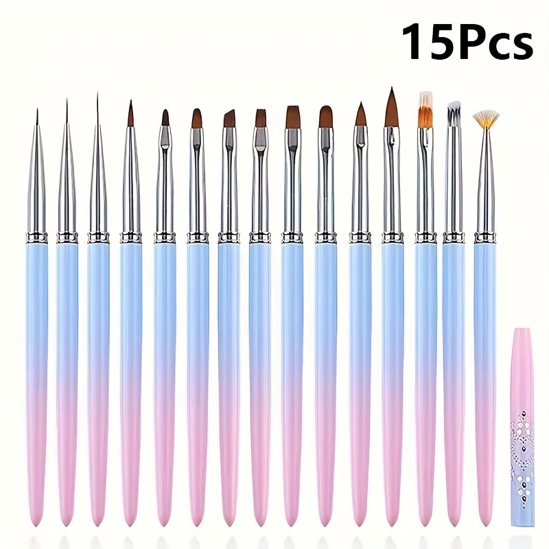 TEMU 15개 프로페셔널 네일 아트 브러쉬 세트 - 오므레 핸들 그라데이션 키트, 정밀 디테일링 브러쉬, 포름알데히드 무첨가 DIY 네일 디자인 도구, 초미세 섬유 브러쉬 (홈 & 살롱용)