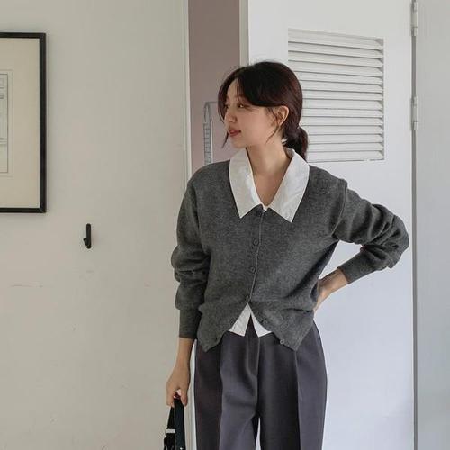 [신상오픈런]코모리 가디건 크루넥 짧은 윈터 사무실 여성 스웨터 숏