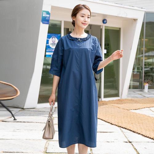 모슬린 엄마옷 단추 카라 원피스 MQG123726 마담 미시 중년여성 빅사이즈 할머니옷 50대 60대 70대