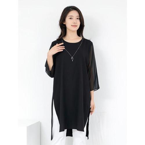 [모슬린]엄마옷 라운드 목걸이 쉬폰 롱 블라우스 614FGH354 마담/중년여성/빅사이즈/50대/60대
