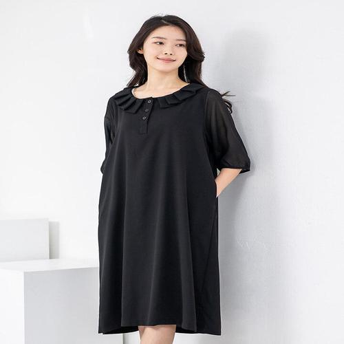 [모슬린]엄마옷 라운드 프릴 진주장식 반팔 원피스 614FGH491 마담/중년여성/빅사이즈/50대/60대