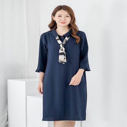 [모슬린]엄마옷 원피스 정장 7부 카라 타이 604FGH061 마담/중년여성/빅사이즈/50대/60대