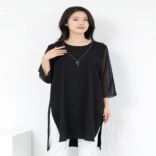 [모슬린]엄마옷 라운드 목걸이 쉬폰 롱 블라우스 MQG127440 마담 미시 중년여성 빅사이즈 할머니옷 50대 ..