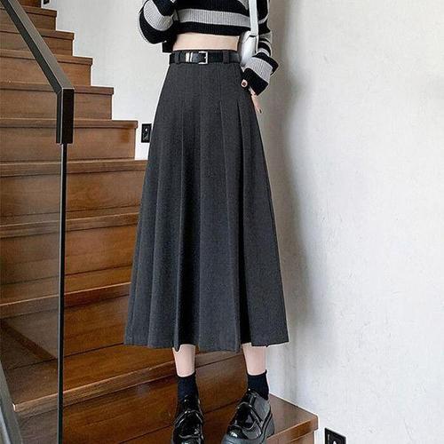 옷자락 / 여자 겨울 모직 이중 A라인 벨트 롱 치마 스커트