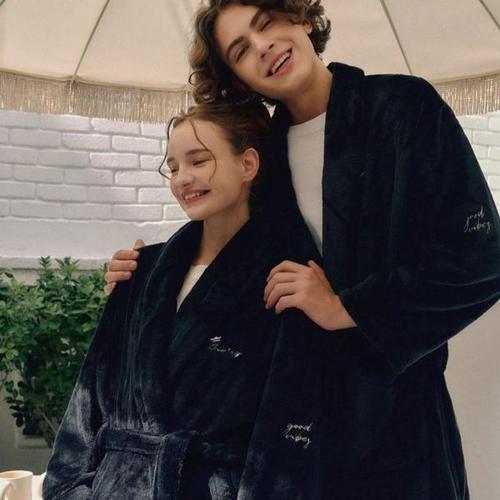 [다잇템]여자 남자 겨울 커플 극세사 자수 목욕 가운