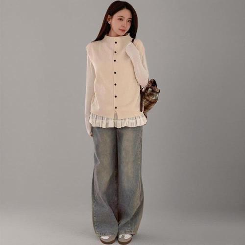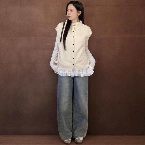 |CMJ6C32|여성 기본 반폴라 버튼 니트 레이어드 조끼