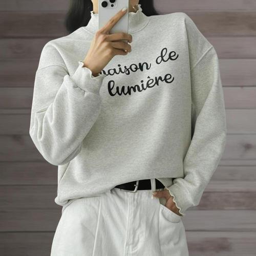|KST9F3E|여성 프릴 하이넥 폴라 맨투맨 겨울 레터링 박스 티셔츠