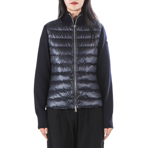 25 FW 몽클레어 로고 니트 슬리브 집업 패딩 가디건 네이비 9B50700 A9341 777