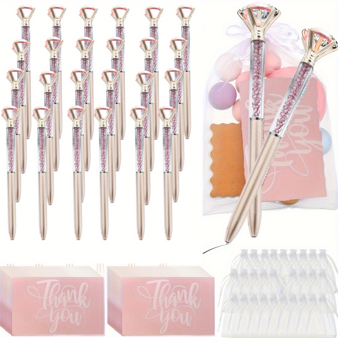TEMU 30개 세트: 10 글리터 펜, 10 화이트 메쉬 백, 10 핑크 카드 – 웨딩 브라이덤 & 신부 펜 선물 키트
