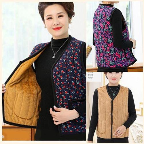 [셀러허브_여성트랜드패션]조끼 인조무스탕 꽃무늬조끼 보온 기모 엄마선물 베스트