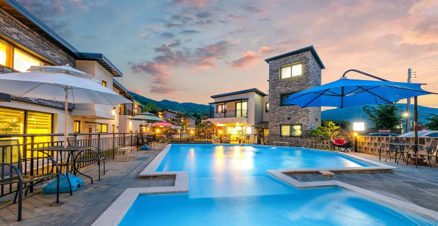 스키장 5분거리 넓은정원&탁트인 뷰가 좋은 독채 복층,개별 바베큐장, 계곡옆펜션