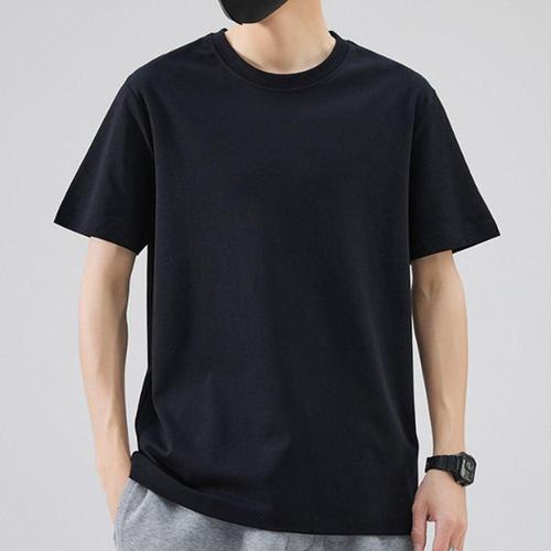 남자 오버핏 무지 반팔티 데일리 블랙 라운드 티셔츠 WFKPW5S