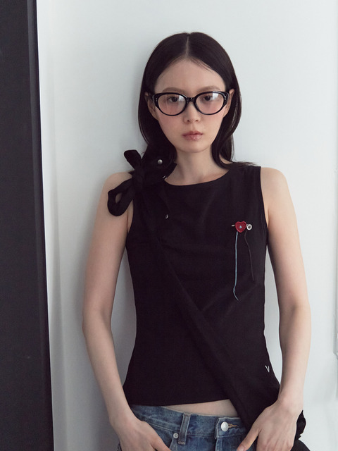 [바카] 브이 체인 스티치 코튼 슬리브리스 (블랙)