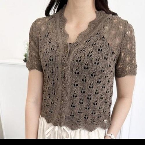 [에이치플러스몰]가디건 크롭 펀칭 물결무늬 DJJ1044