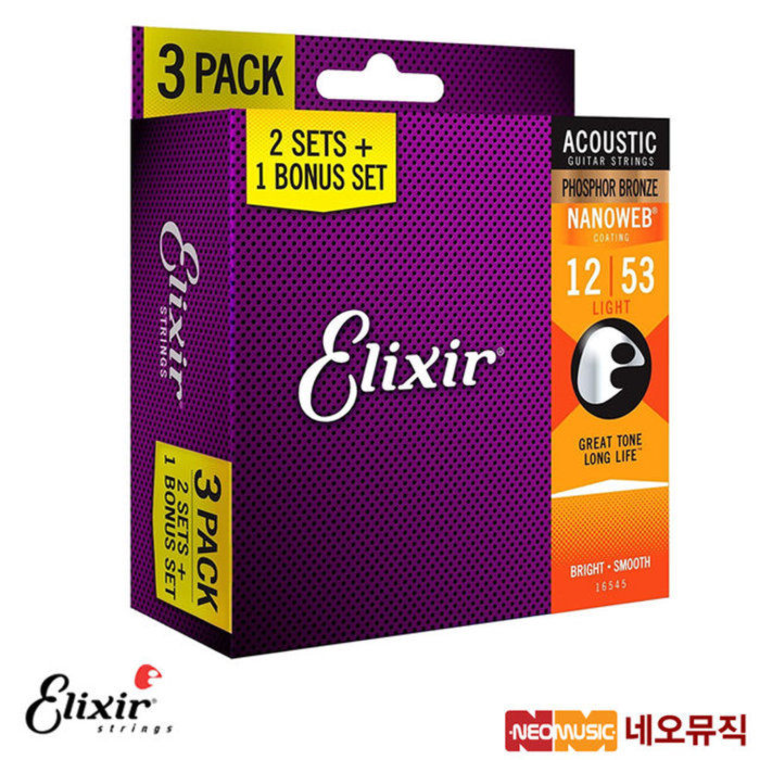 네오뮤직 엘릭서기타스트링 Elixir 16545 Light Phosphor 3pack