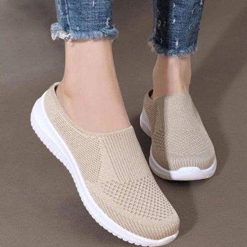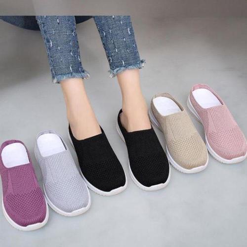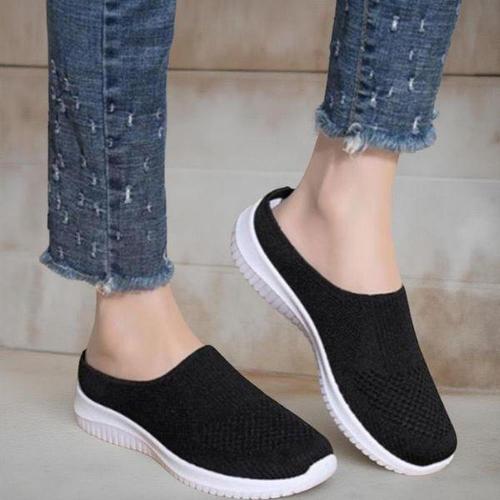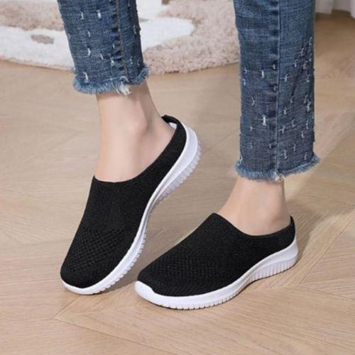 [신상오픈런]여성 심플한 패브릭 니트 뮬 슬립온 플랫슈즈