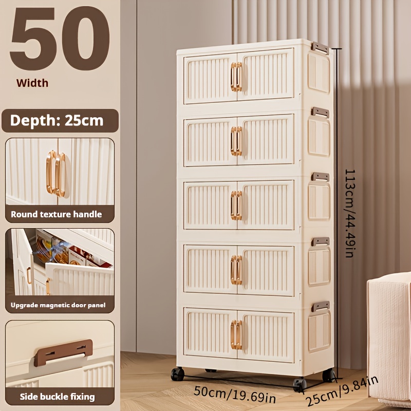 TEMU 1pc 업그레이드된 델루스 5층 대형 보관 캐비닛, 바퀴와 문이 있는 플라스틱 접이식 보관 상자, 이동하기 쉽습니다. 문서, 장난감, 스낵 및 옷을 정리하기에 적합합니다. 침실, 거실, 사무실, 주방 보관, 4계절에 적합한 완벽한 선물입니다.|거실장|수납정리함|옷