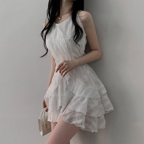[옷자락]여자 스트랩 미니 민소매 캉캉 셔링 원피스