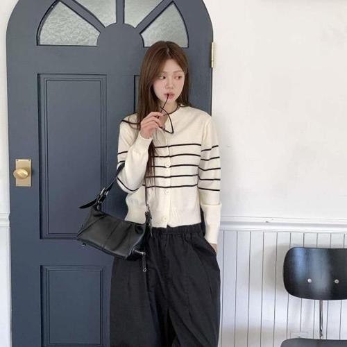 [다잇템][다잇템] 여성 폭신 하프 U넥 스웨터 줄무늬 미니멀리즘 가디건_23517706_588872