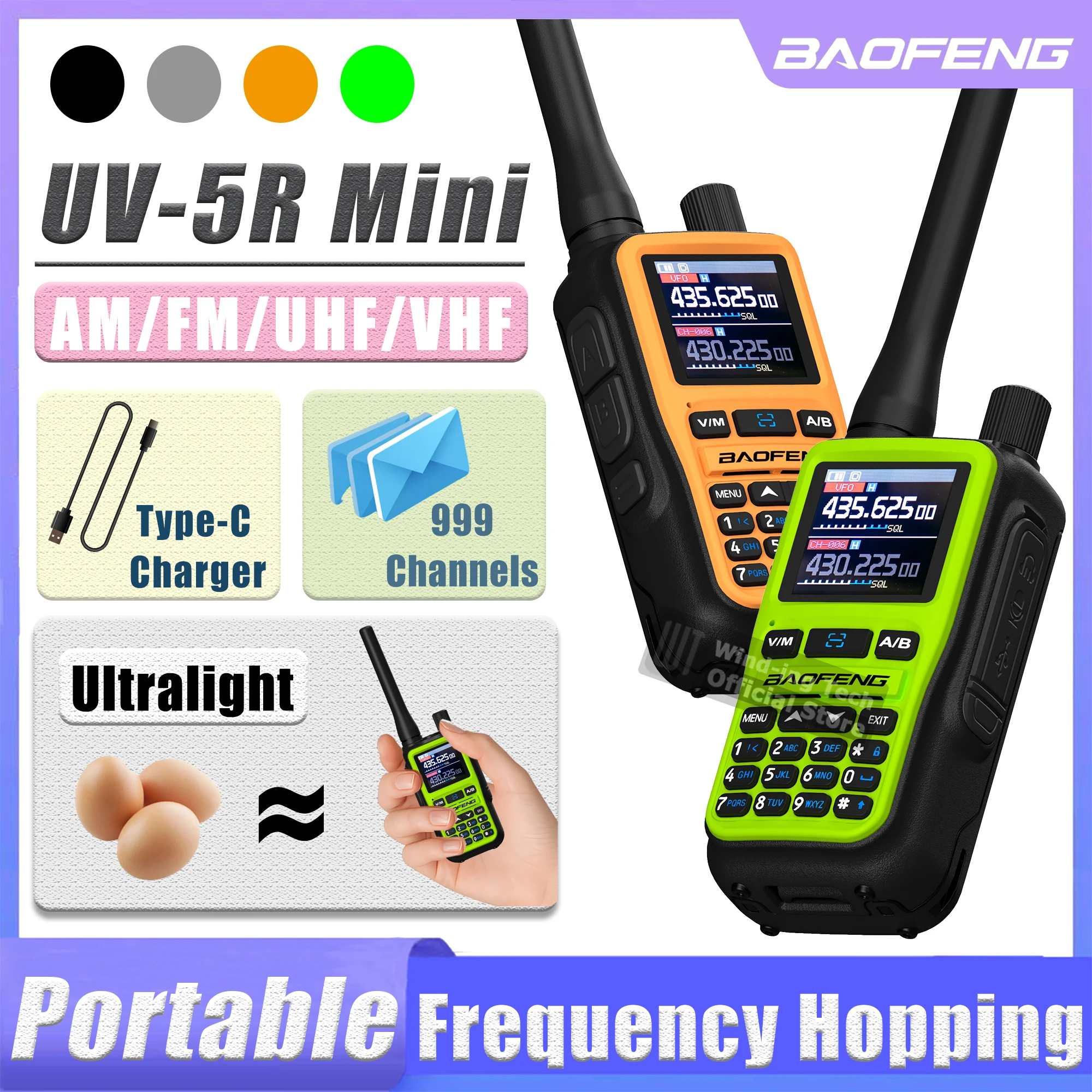 바오펑 UV-5R 미니 5W 무전기 멀티 밴드 블루투스 앱 NOAA 날씨 999채널 타입-C 충전식 양방향 무전기 (야외 사냥용)