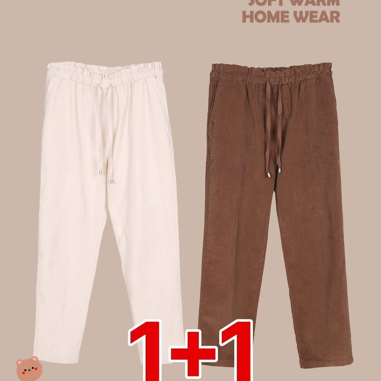TEMU (1+1)( 2장세트! ) 여성 편안한 데일리웨어/홈웨어 셔링 허리 밴딩 바지(AA3OP3LP094W)