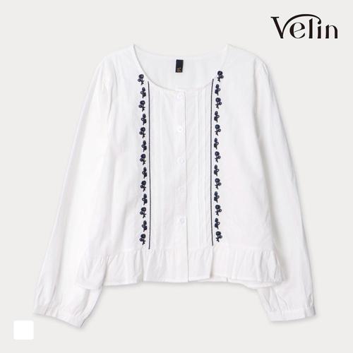 벨린 미스틱 자수 블라우스 프릴 긴팔 탑