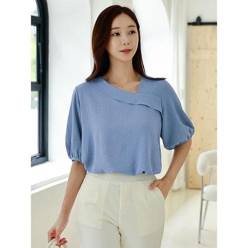 [드리다]여성 여름 셔링 오픈 빅사이즈 반팔 블라우스 하객 모임 상견례 오피스룩 미시 엄마옷